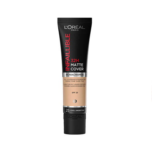 کرم پودر اینفالیبل لورال 32 ساعته مات،انواع پوست بخصوص پوست چرب و مختلط میتوانند از آن استفاده کنند، پوست را به خوبی کاور میکند اما به آن اجازه تنفس نیز میدهد، جلوه نهایی مات و طبیعی و بافت سبکی دارد و ضد آب و مقاوم در برابر دما فرموله شده است. کرم پودر لورال اینفالیبل اصل SPF25 دارد در نتیجه از پوست در برابر اشعه مضر خورشید محافظت میکند. همچنین حاوی نیاسینامید 4 درصد است که خاصیت ضد لک، ضد قرمزی و کنترل کننده چربی پوست را دارد. از دوام زیادی بر روی پوست برخوردار بوده، پوشش دهی آن بسیار مناسب است به طوری که خطوط ریز چین و چروک را نیز به خوبی کاور میکند.